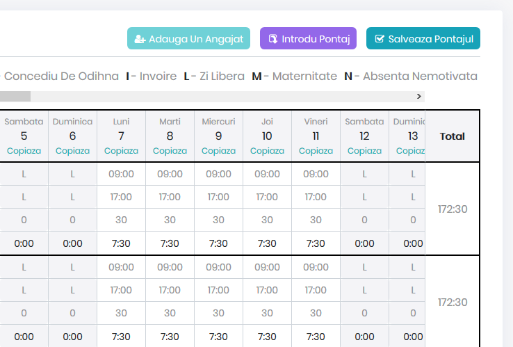 Când am creat Foaie de Pontaj am încercat să eficientizăm cât mai mult procesul de pontaj. În consecință, pentru a introduce pontajul pentru angajați ai la dispoziție următoarele opțiuni: