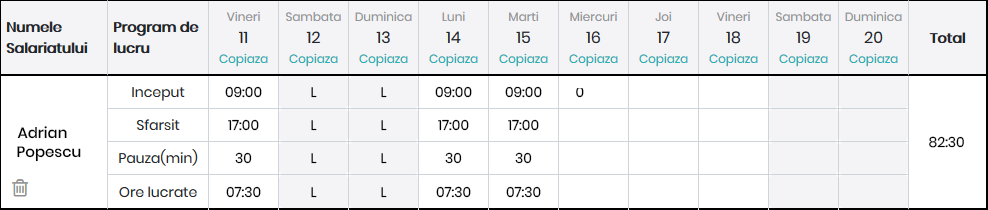În imaginea de mai jos este prezentat un exemplu de introducere manuală a pontajului.