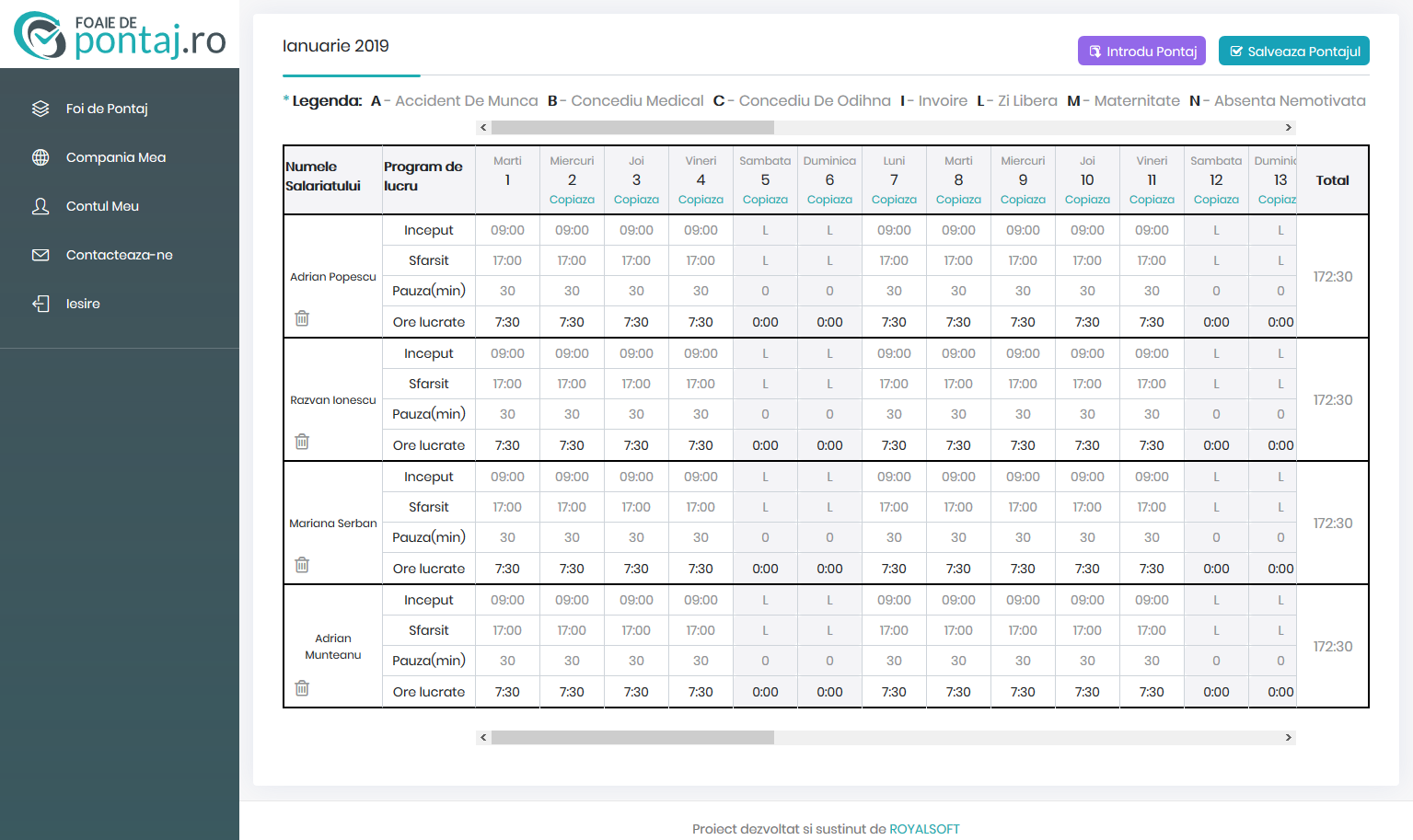 Dacă vrei o soluție eficientă pentru a ține pontajul pentru angajații tăi, aplicația Foaie de Pontaj te poate ajuta.